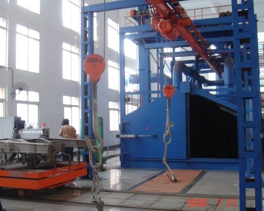 具體工藝流程如下:由上料→輥道輸送→拋丸機強化→輥道輸出→最后下料,即組成了一條鋼板清理拋丸機的生產線。